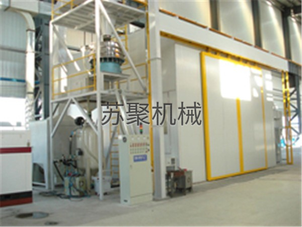自動機械式回收噴砂(丸)房為平車往復式專用噴丸機,它由噴丸室體、噴丸器、螺旋輸送機、提升機、分離器、彈丸控制系統(tǒng)、照明系統(tǒng)、除塵系統(tǒng)、輸送平車、電控系統(tǒng)等部分組成。