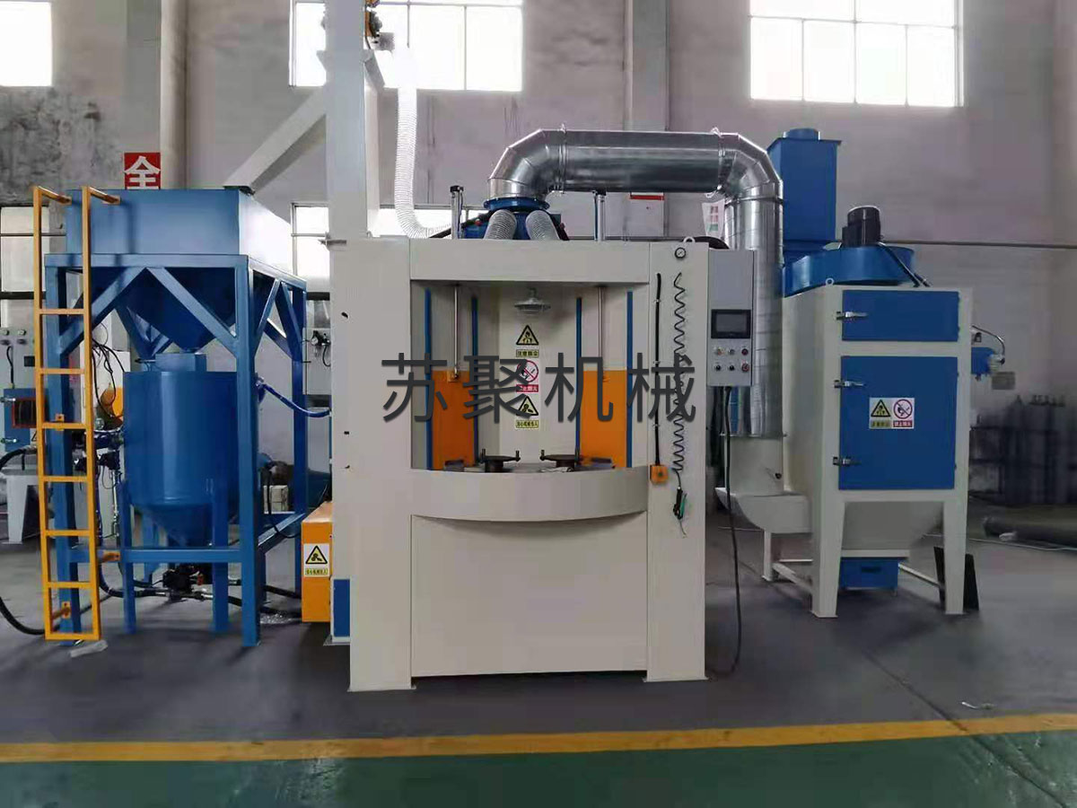 2.本設(shè)備的特點是大轉(zhuǎn)盤上可設(shè)計16-26個工位,大轉(zhuǎn)盤連續(xù)轉(zhuǎn)動,中間無間歇停止,噴砂效率大大提高,適用于中小型標準工件。